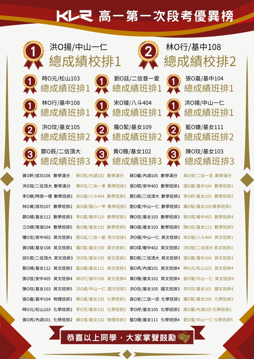國中 > 段考金榜