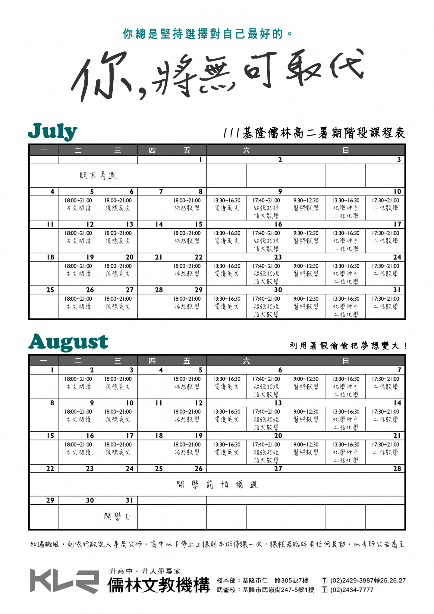 升高二暑假課表