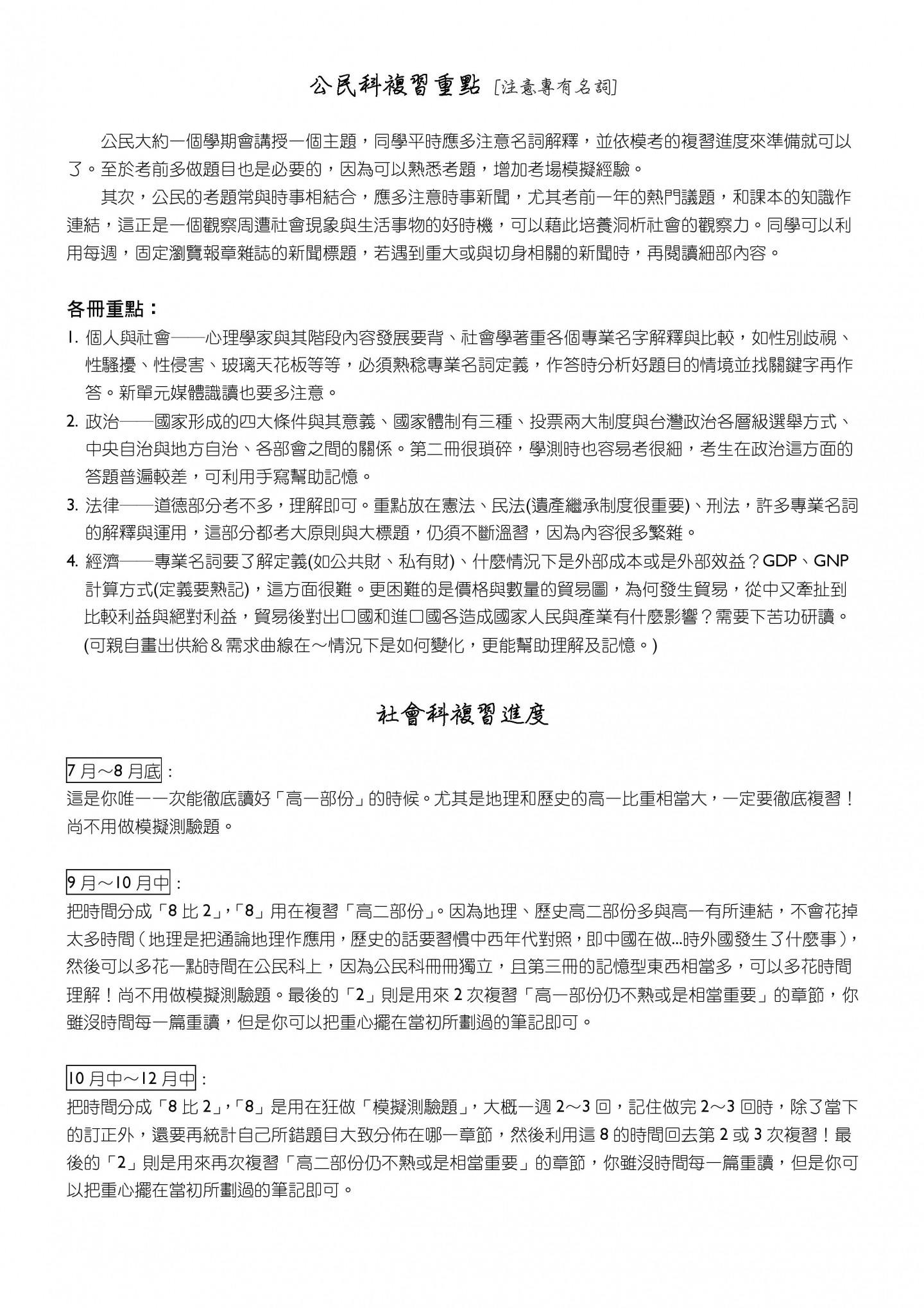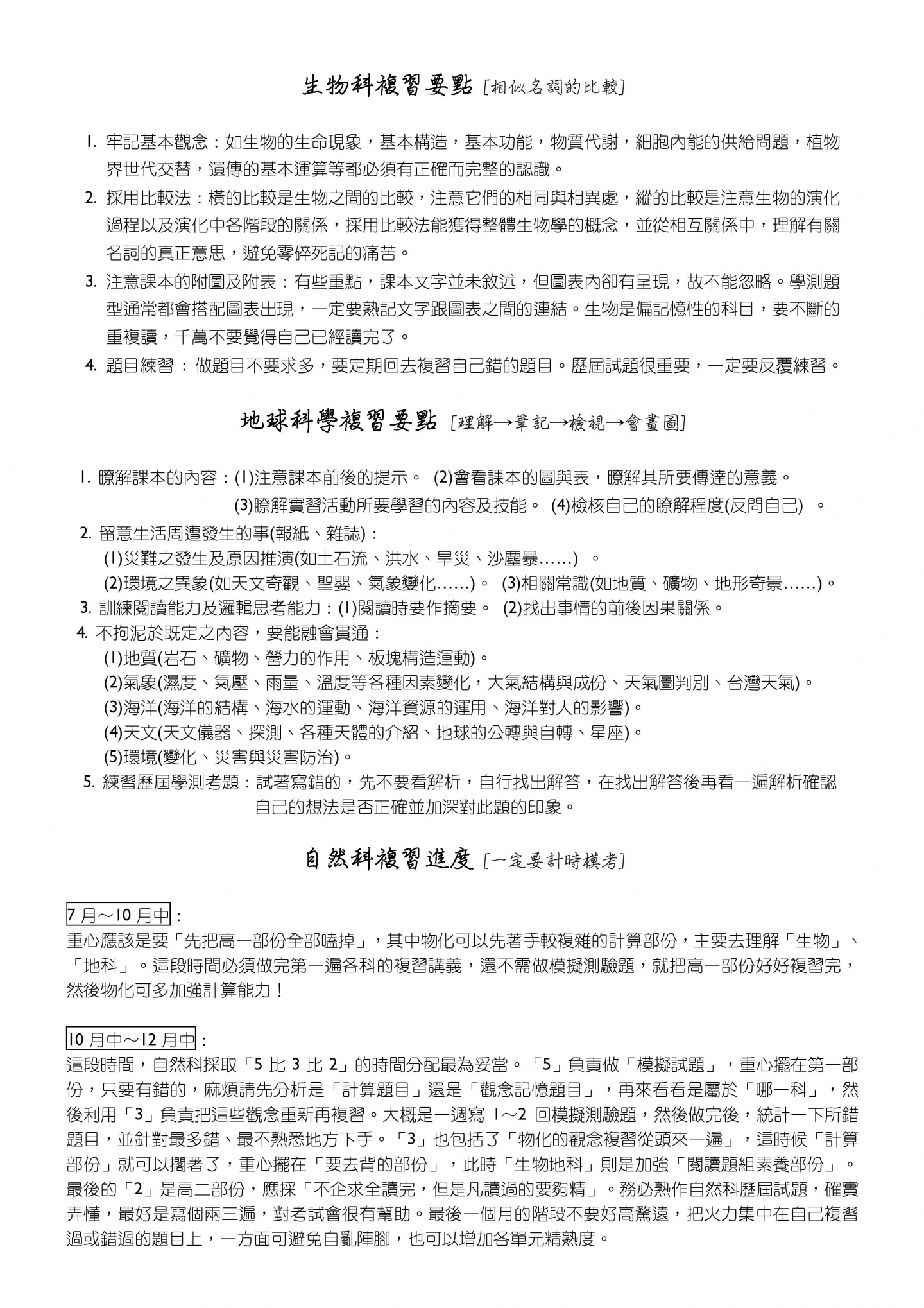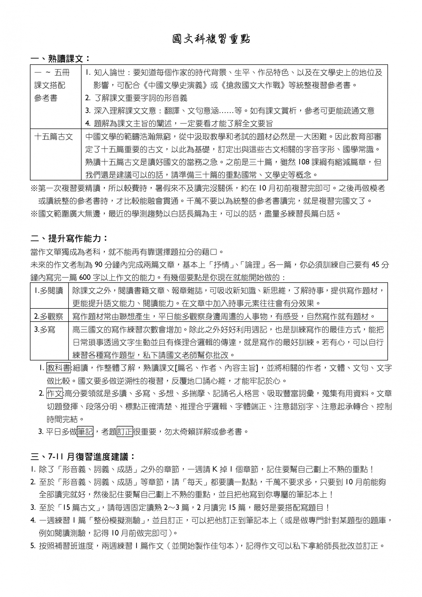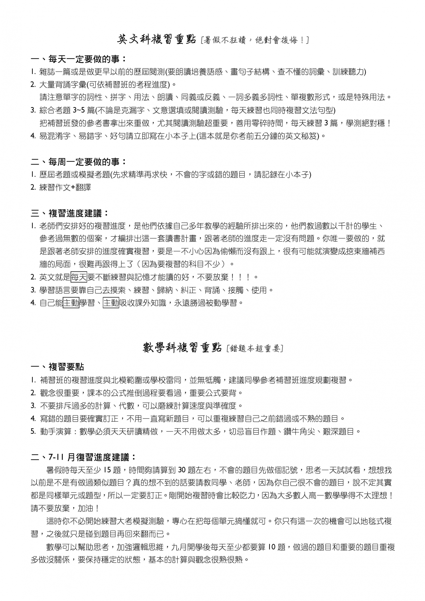 • 高三下課程規劃