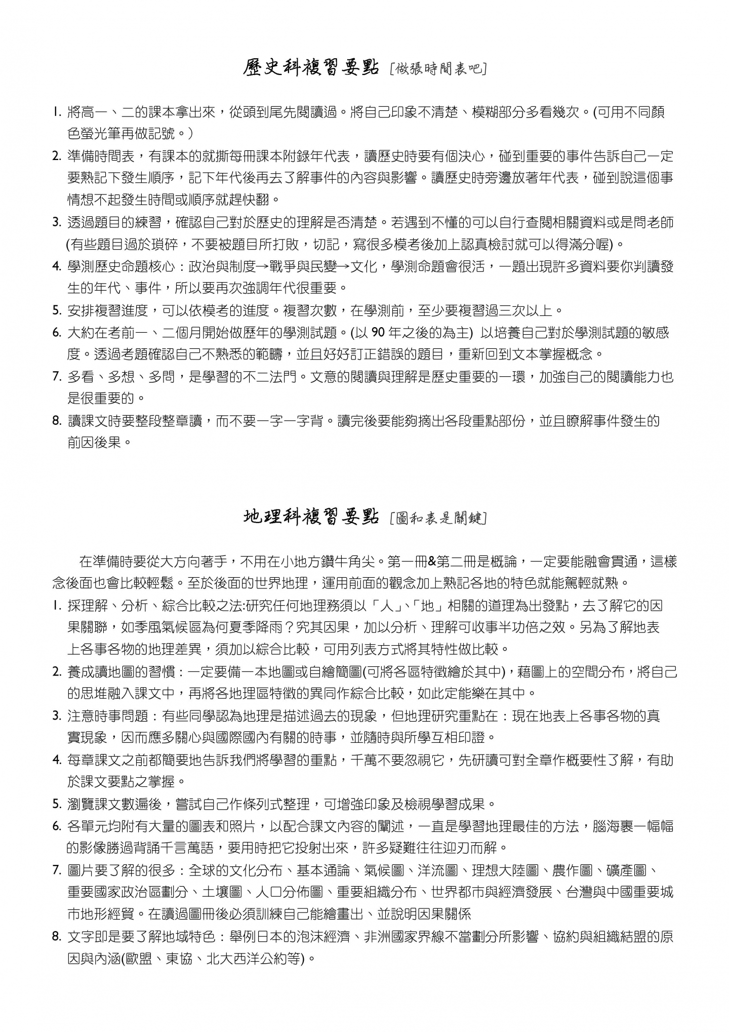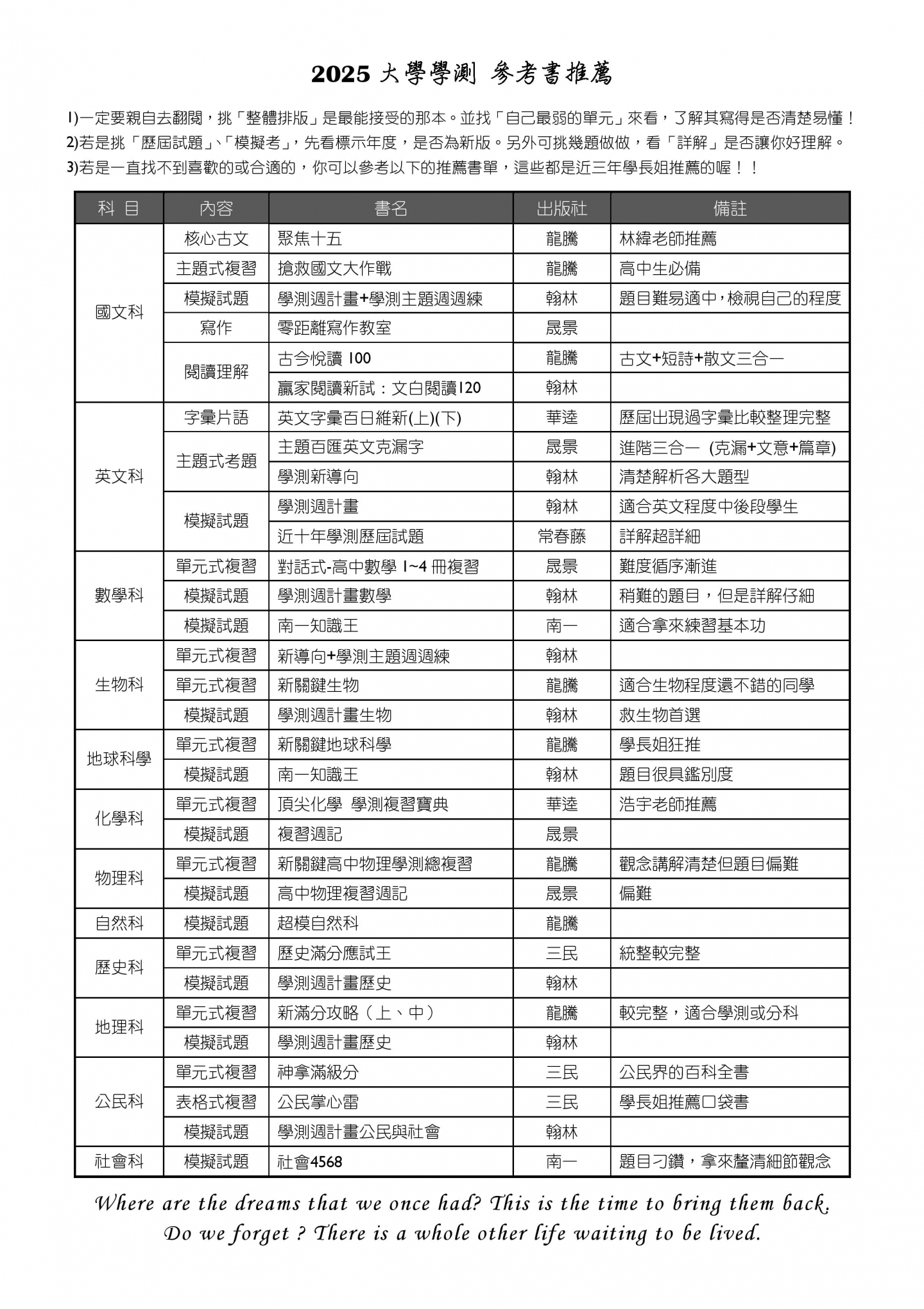• 學測各科課程規劃