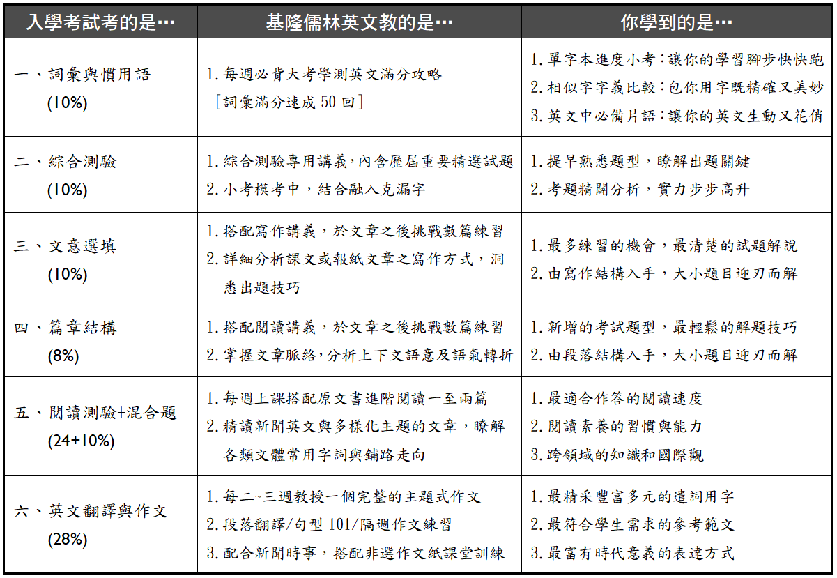 學測英文,共有四大重點:
