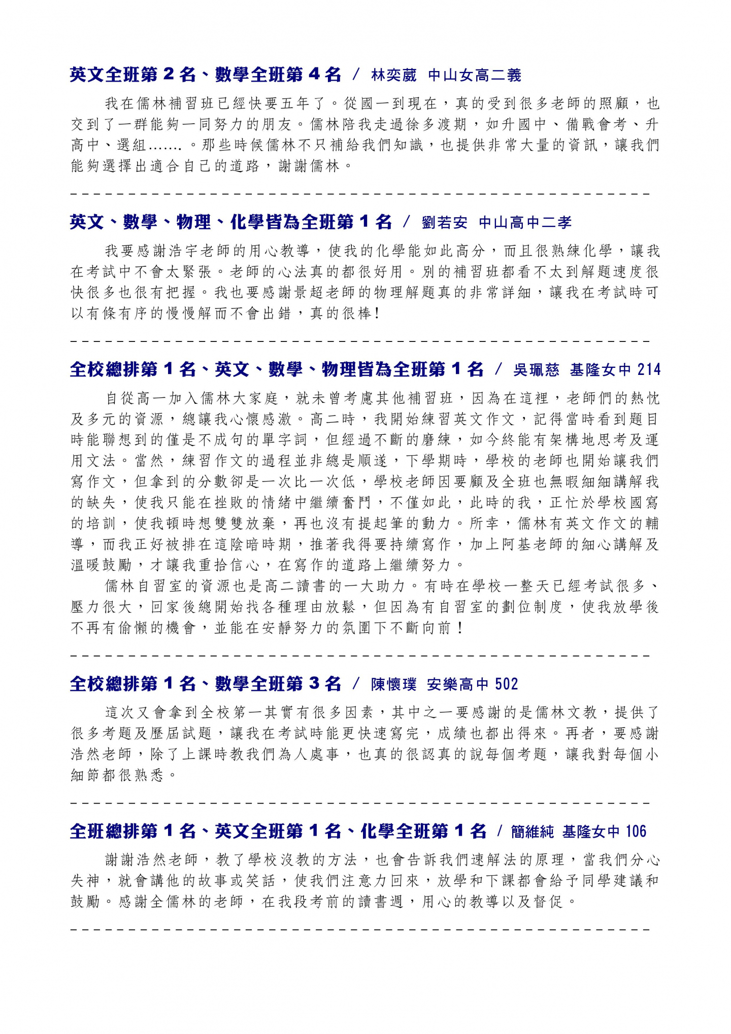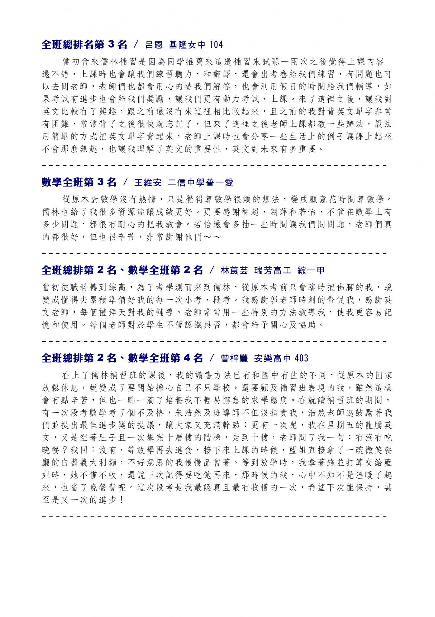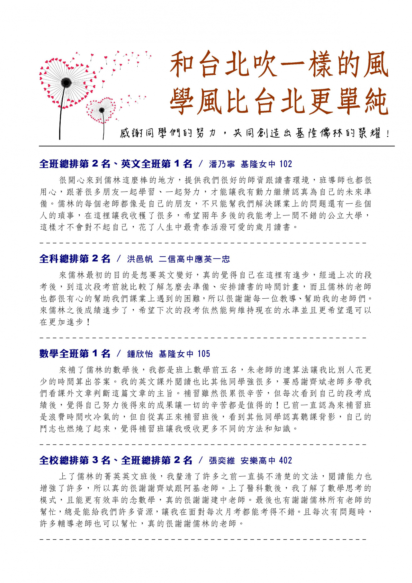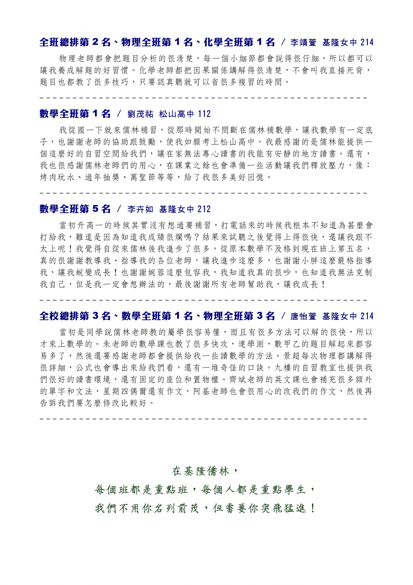基隆區唯一敢公布榜單的數學家教班