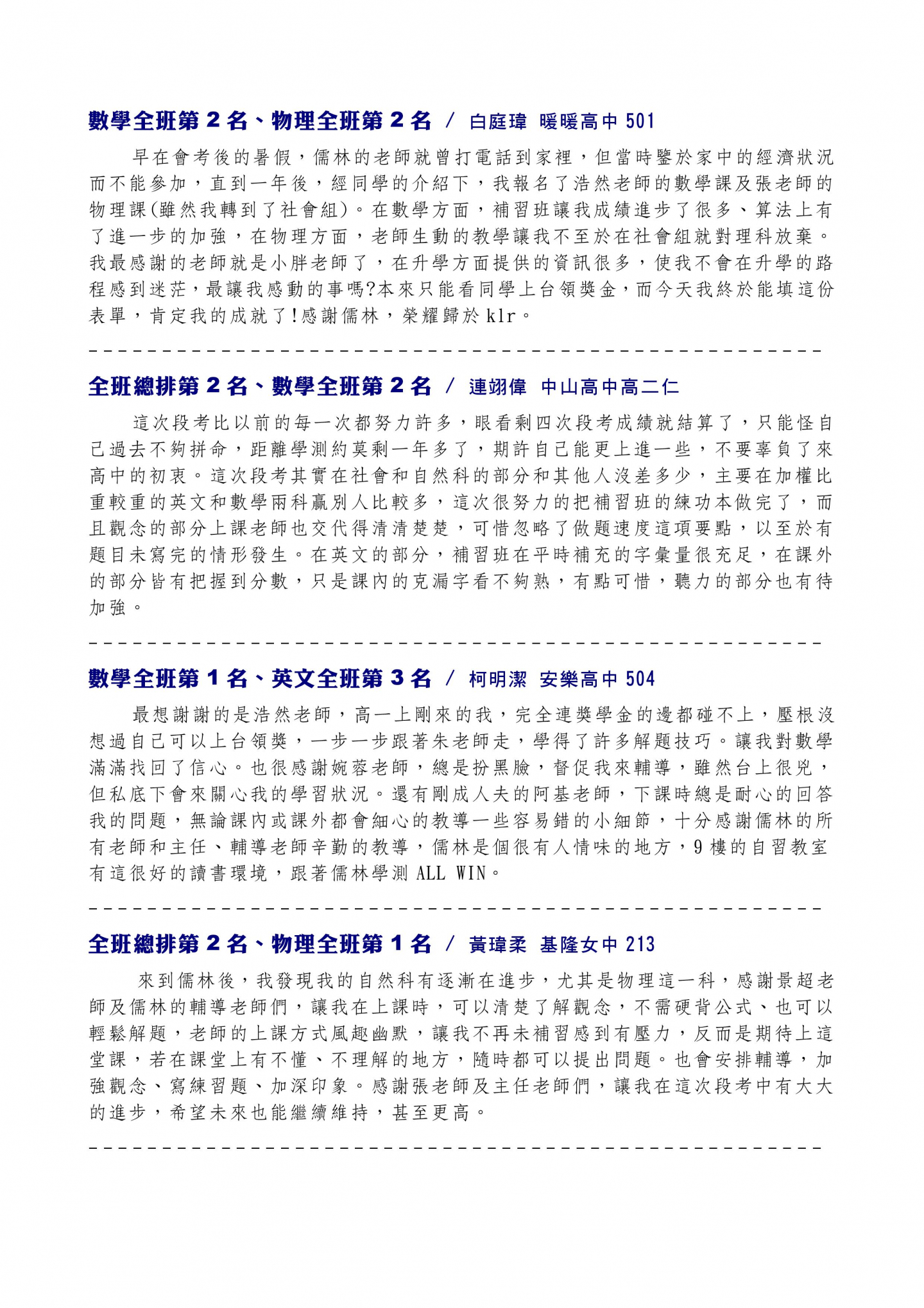 榮譽榜單感言