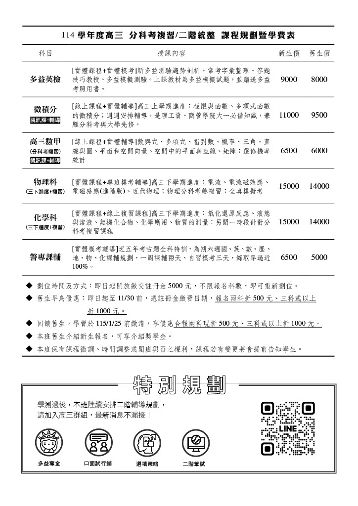 高三下課程規劃