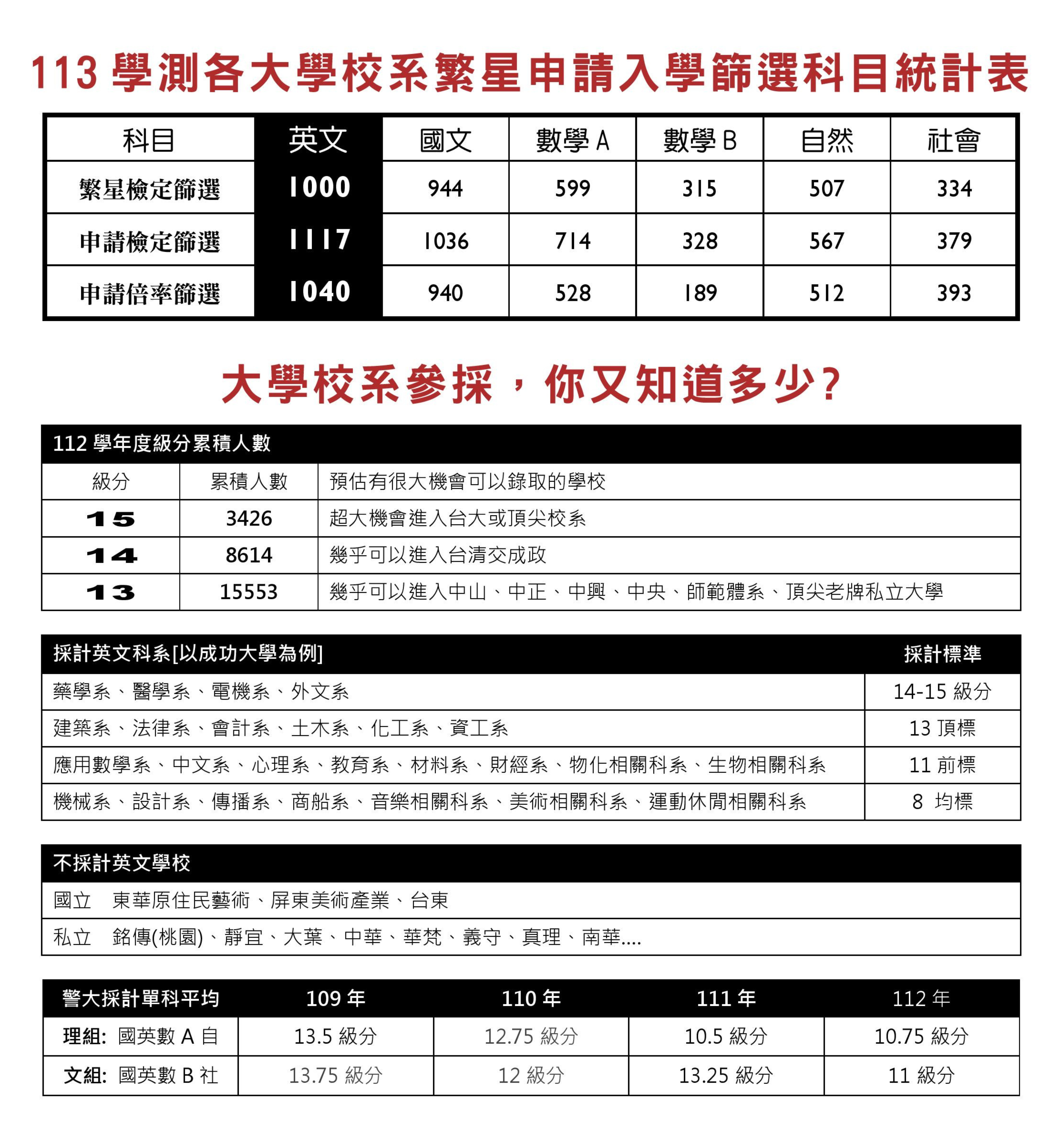 1.學測英文科是全部科目中,最多大學科系要採計的。